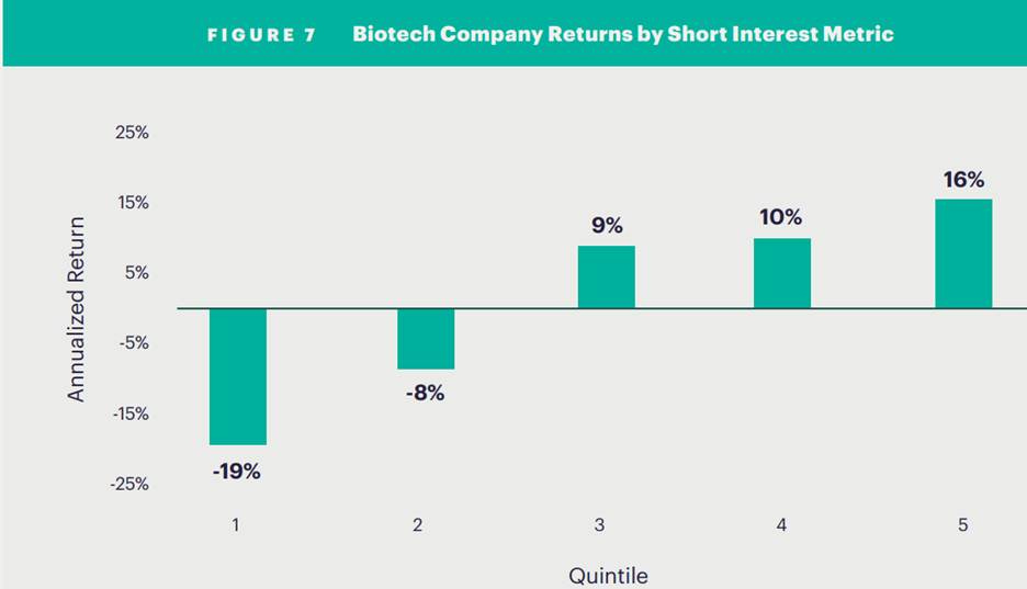 Short sellers also turned out to be excellent at identifying losers—heavily shorted stocks returned -19% while minimally shorted stocks returned 25%.