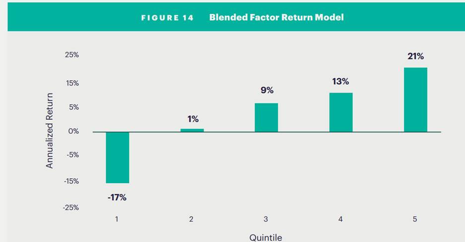 When combined, these three factors create a model that spreads returns from -17% for the worst quintile to 25% for the best quintile—a remarkable 42 percentage point spread.