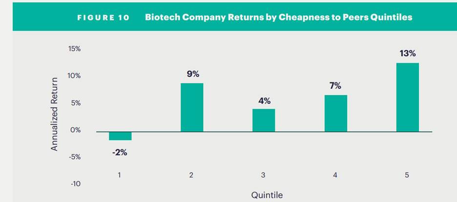 3. Relative Valuation to Peers: Instead of measuring if a biotech stock is cheap or expensive relative to the market, measure valuation relative to its peers.